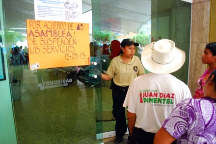 MÉXICO, D.F., (apro).- Trabajadores afiliados a la sección 35 del Sindicato Nacional de Trabajadores del Sector Salud (SNTSS) pararon labores en hospitales y clínicas de Oaxaca, para exigir el pago de salarios y la entrega de equipo médico para dar servicio a la comunidad.