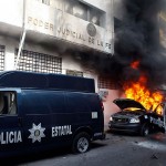 Manifestantes queman patrulla y se enfrentan a la policía en Chilpancingo