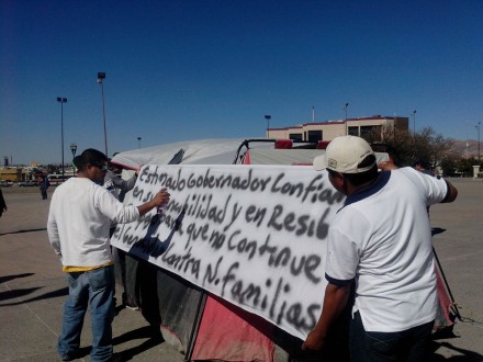 CHIHUAHUA, Chih. (apro).- Alrededor de 400 familias del fraccionamiento Rinconada Los Nogales, en esta ciudad, instalaron un plantón permanente frente a palacio de gobierno para exigir al gobernador César Duarte la evacuación inmediata de los colonos que viven en la zona donde se encontraba la Fundidora Ávalos y que está contaminada por plomo y otros metales pesados.