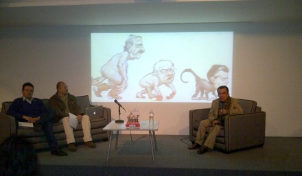 La mayor parte de las risas de los asistentes se produjeron cuando se dio paso al recorrido de los cartones antes mencionados a través de un proyector.