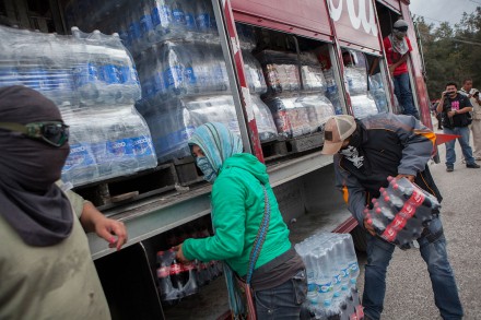 Los normalistas llevaron a los empleados de Coca-Cola hasta la plaza central, donde ocurrió un enfrentamiento con policías estatales, que dejó un saldo de dos maestros detenidos y al menos 10 lesionados, entre ellos cuatro policías, cuatro manifestantes y dos reporteros.