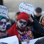 Los manifestantes reclamaron que el tema de los derechos humanos se incluya en el año de México en el Reino Unido y del Reino Unido en México, también conocido como UKMX2015.