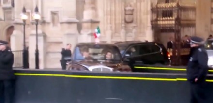 Un video que circula en redes sociales desde el miércoles pasado muestra el momento en que el primer mandatario mexicano sale de una reunión en el Parlamento Británico mientras un grupo de activistas protestaba por la visita.