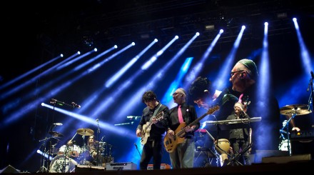 Los dioses ocultos, La célula que explota y La negra Tomasa fueron parte del repertorio durante la presentación de esta banda que inició su entrega musical pasadas las 21:00 horas ante una lluvia intensa pero intermitente.