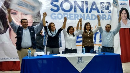 En la víspera, la candidata a gobernadora estuvo acompañada en sus actividades por la excandidata presidencial Josefina Vázquez Mota, quien reclamó que las campañas sucias que comienzan a desatarse en San Luis Potosí con motivo de las elecciones ataquen a Sonia Mendoza por ser mujer, lo que asegura que ocurrió cuando ella fue aspirante a la Presidencia de la República.