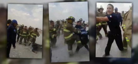 En uno de los videos se observa cómo policías auxiliares intentan calmar los ánimos entre los elementos identificados por su traje café con amarillo y la leyenda “Bomberos México DF”. Sin embargo, de las palabras se van a los golpes.