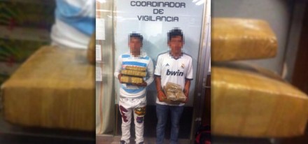 Dos jóvenes de 18 y 16 años portaban en sus mochilas cinco paquetes de droga envuelta en cinta canela.