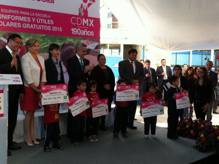 MÉXICO, D.F. (apro).- Previo al inicio de la veda electoral, el jefe de Gobierno del Distrito Federal, Miguel Ángel Mancera, adelantó tres meses el arranque de la entrega de vales electrónicos para uniformes y útiles escolares en beneficio de un millón 250 mil alumnos de escuelas públicas.
