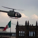 La mayoría prende la cámara de su teléfono celular para tomar video del momento en que se eleva de nuevo el helicóptero, “torea” la bandera nacional, sortea la Catedral Metropolitana y pasa por encima del Antiguo Palacio del Ayuntamiento y luego aparece de nuevo por la avenida conmemorativa de la Revolución Mexicana.