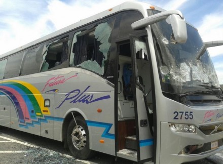 Versiones indican que los agentes bajaron a los estudiantes de autobús de la línea Futura y los golpearon, además de destrozar los vidrios de la unidad.