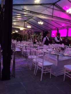 “La boda era de rigurosa etiqueta, las mujeres con vestido largo, los adornos con luz de neón en todos los arcos iluminados en tonos morado y rosa en una carpa transparente, en donde se avizoró un gasto excesivo que no se conoce si salió del erario”, cita la crónica del mencionado periódico digital.