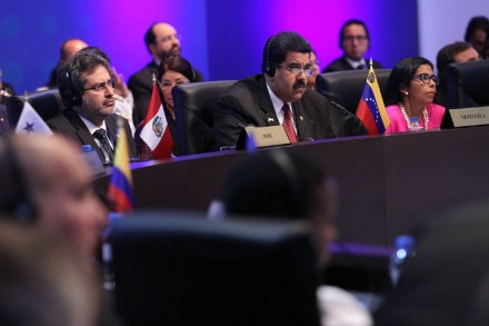 La intervención de Maduro ocurrió cuando Barack Obama ya había abandonado el Centro de Convenciones Atlapa, donde se desarrolla la Cumbre de las Américas, por lo que las más de 10 millones de firmas recabadas contra las sanciones decretadas por el estadunidense fueron entregadas a su canciller.
