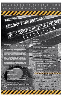 MÉXICO, D.F. (proceso.com.mx).- El Coloquio Encrucijadas Políticas en el Teatro, Filosofía y Letras tuvo ayer por la tarde su mesa de conclusiones con la participación de profesores y maestros del colegio de Literatura Dramática y Teatro de la UNAM.