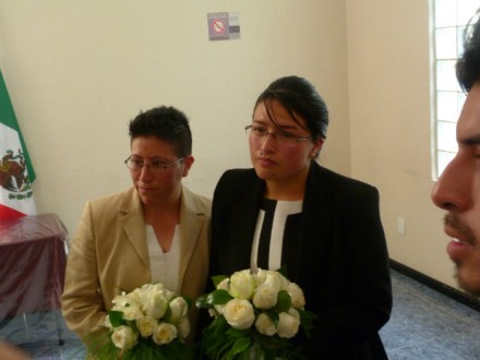 TOLUCA, Edomex. (proceso.com.mx).- Por mandato de la Suprema Corte de Justicia de la Nación (SCJN), que amparó a cuatro parejas homosexuales del Valle de Toluca, Jessica Carrillo Sánchez y Gabriela Cejudo Sámano se convirtieron en la primera pareja gay en contraer nupcias en el Estado de México.