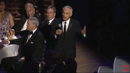 Durante su discurso, el conductor también brindó por “tres grupos de rebeldes”. El primero, “uno que está muy cerca de mi corazón, es un grupo de periodistas mexicanos que denunciaron corrupción en los más altos niveles del gobierno mexicano”, explicó Ramos antes de hablar del caso de la “Casa Blanca de Peña Nieto”.