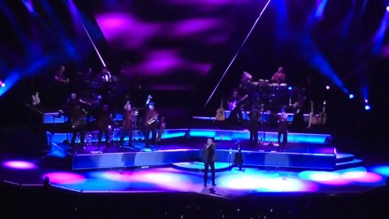 Dueño de la escena, interpretó sus éxitos de cajón acompañado por una banda de 12 músicos que llevan algunos lustros acompañándolo, dotación consistente en percusión, batería, teclados, dos guitarristas, bajo, set de metales y un par de coristas –por cierto con voces que exaltaban un vibrato mal encausado, totalmente fuera de control, con poco trabajo de ensamble vocal y cuadratura– que cumplía, sí, pero con reservas. En verdad, fue un gran concierto: los presentes convivieron, cantaron y gritaron en un entorno muy controlado; al artista no se le mueve un pelo sin planearlo…