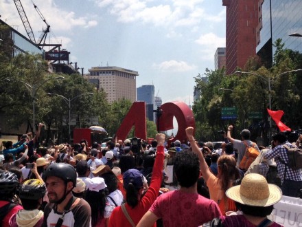 MÉXICO, D.F. (proceso.com.mx).- A siete meses de la desaparición de los 43 normalistas de Ayotzinapa, Guerrero, grupos y asociaciones de la plataforma Solidaridad con Ayotzinapa organizaron un encuentro artístico-cultural en el Paseo de la Reforma con la presencia de familiares de los estudiantes, y con la exigencia hacia el gobierno de presentarlos con vida y justicia para los jóvenes.