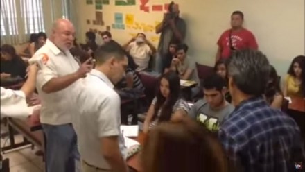 Enseguida se generó una discusión entre Aguilar, Clouthier e Ibarra, donde los estudiantes explicaron al director que ellos mismos autorizaron al maestro invitar al empresario y político.