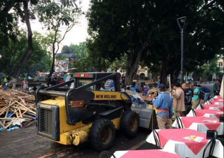 Conjuntamente con los inspectores del municipio de Oaxaca de Juárez se realizó el retiro de un remanente de estructuras de madera -sin mercancía- ubicadas en el andador perimetral del Zócalo capitalino.
