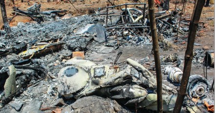Un vaquero cabalgaba por un camino aledaño. De pronto, dice, vio una bola de humo en el aire, luego vino el desplome de un helicóptero que, oscilante, cayó a menos de dos kilómetros delante de Villa Vieja al parecer envuelto en llamas.