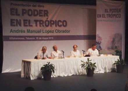 López Obrador llegó por la tarde a esta capital y a las 18:00 horas presentó su más reciente libro “El poder en el trópico”, una compilación de tres anteriores obras sobre la historia de Tabasco, su tierra natal.
