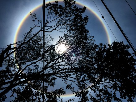 Un halo solar en la Ciudad de México, fenómeno meteorológico que se presenta con mayor frecuencia en la temporada de lluvias.