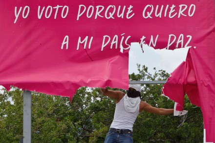Luego de la marcha-mitin de los estudiantes de la Escuela Normal Rural Mactumatzá, los manifestantes quemaron llantas y propaganda electoral en la plaza central de esta ciudad.