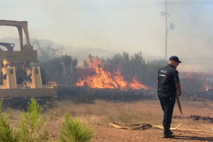 Aproximadamente tres horas después, los manifestantes incendiaron una hectárea de pastizaje en una zona contigua a la dirección de seguridad pública municipal y las oficinas regionales de Policía Estatal Investigadora (PEI).
