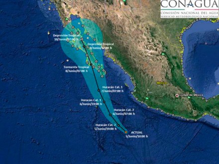 Según datos del Centro Nacional de Huracanes (CNH) de Estados Unidos, el meteoro avanzaba este viernes en aguas del Pacífico mexicano con vientos máximos sostenidos de 155 kilómetros por hora y amenazando con fuertes lluvias a varios estados del país, mientras se enfilaba rumbo al centro turístico de Los Cabos, donde tocaría tierra el domingo.