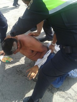 En ese momento una patrulla de la Policía Municipal pasaba por el lugar, logró rescatar a los sujetos, los detuvo y los subió a la unidad.
