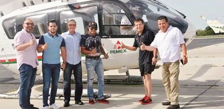 CIUDAD DEL CARMEN, Cam. (apro).- Autoridades del ayuntamiento y dirigentes del sindicato petrolero agasajaron el pasado fin de semana al excampeón mundial Julio César Chávez e incluso utilizaron un helicóptero de Petróleos Mexicanos para pasearlo sobre el área de plataformas marinas.
