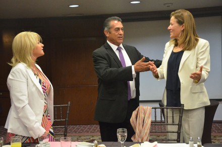 Al salir, cuando se enteró que al otro lado del vestíbulo, en el salón Ducal, Zavala estaba reunida con diputadas locales y federales panistas electas, “El Bronco” la buscó. Interrumpió la reunión donde se encontraba la esposa del expresidente Felipe Calderón Hinojosa y la saludó de beso.