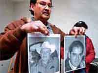 El campesino Joel Cárdenas Bracamontes, papá de Sergio, cargaba una manta con la foto de su hijo. Explicó: “Los muchachos fueron a trabajar y desaparecieron. Nadie vio nada, nadie sabe nada. Su ruta era de Saltillo a Piedras Negras y yo pienso que los tiene la policía o un cliente, porque llevaban todavía tres kilos de oro y como 1 millón de pesos de lo que ya habían vendido. El Ejército los revisó al pasar de Nava y los dejó libres porque traían documentos que respaldaban la mercancía. Ya después no supimos”.