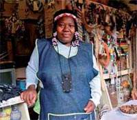 En el tenderete contiguo nos atiende una sangoma fornida y risueña que también pide permiso a los ancestros para hablar con nosotros. Pero se topa con la misma negativa.