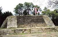 Muy poca gente sabe de la pequeña pirámide del 1200 d. C. que lo corona, y que tiene a los pies de su escalinata una tortuga con garras de jaguar, labrada en la roca madre, animal mixto y mítico.