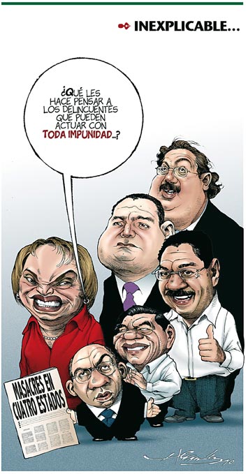 La guerra calderonista contra el narcotráfico ha causado decenas de miles de muertes (el gobierno federal reconoce más de 28 mil y algunos conteos independientes sitúan la cifra en poco más de 25 mil), más que las habidas durante la …